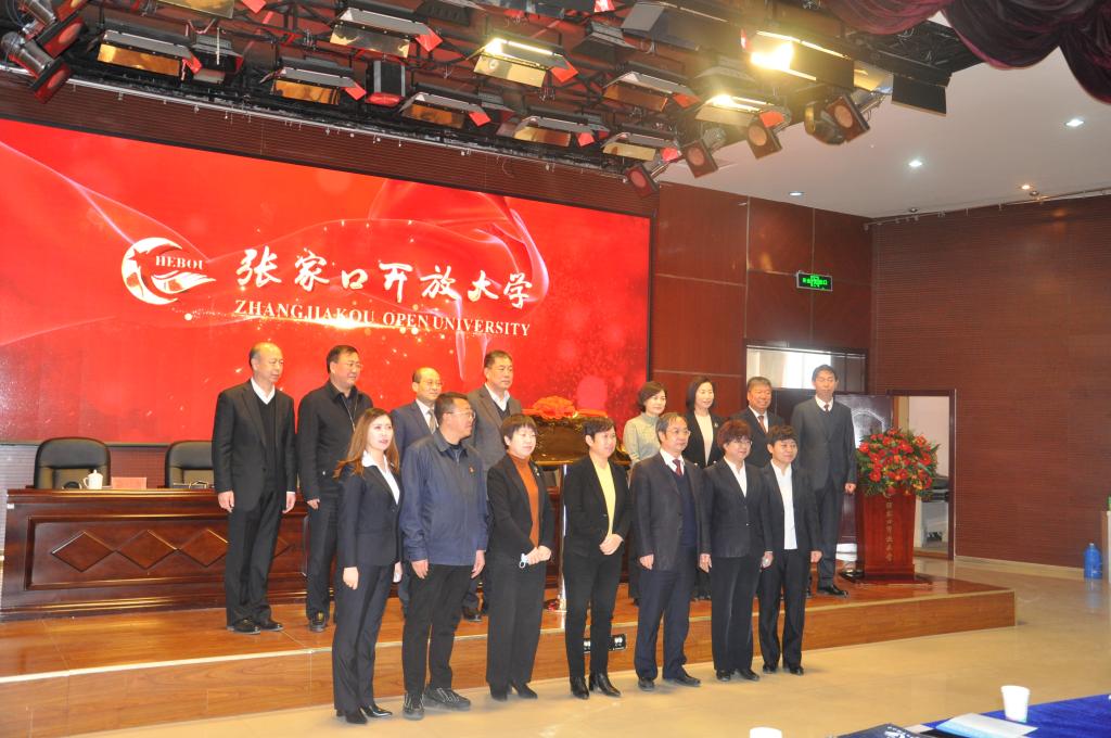 在熱烈的氣氛中,河北開放大學黨委書記籍獻平、張家口市政府副市長閆利艷為張家口開放大學揭牌!